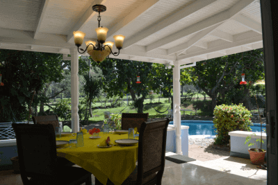 After all is prepared, what better way to enjoy a meal than to sit outside by the pool and breathe in the beauty and ambiance of Jamaica. Or you could choose to make a more formal presentation with guests around the large dining tables in the dining hall. Either way, you are sure to make plenty of memories while at Seven Palms Villa.