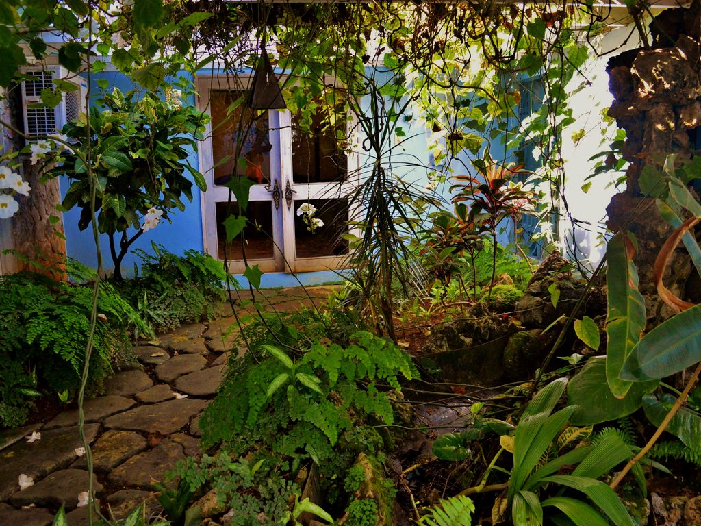 All five bedrooms are situated around an indoor garden courtyard. Each bedroom is tastefully decorated and has a comfortable king size bed, flat screen tv with DVD player, air-conditioning and its own bathroom. The king size beds can be replaced with two bunkbeds to allow up to four people to sleep in each bedroom. Two of our bedrooms are larger, master bedrooms with a main door entering from the courtyard and a second, picturesque sliding glass door that fills the room with light and opens to our beautiful backyard.